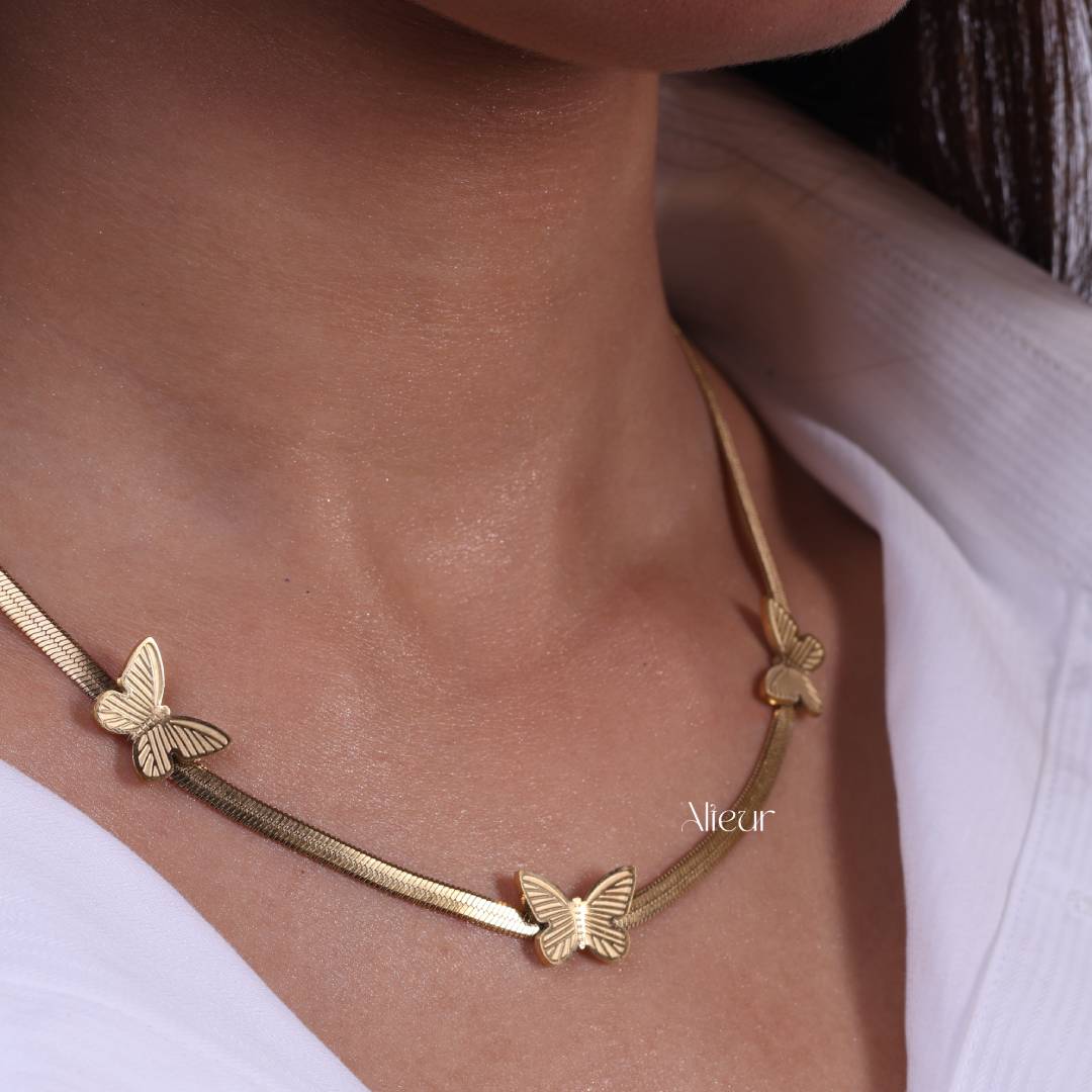 Trio Butterfly Snake Chain Necklace